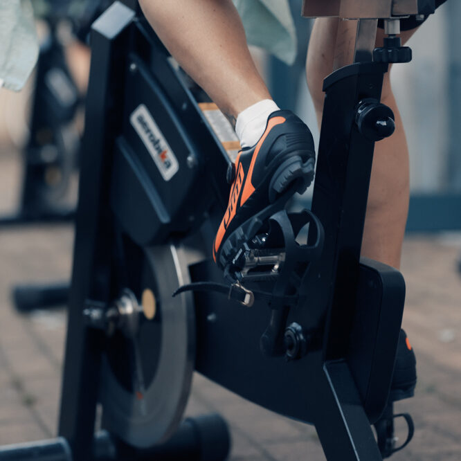 La lezione, svolta in gruppo, è pilotata da un istruttore che detta i ritmi pedalando insieme ai partecipanti. Il suo ruolo è anche quello di motivatore: così, la concentrazione e il coinvolgimento alleviano anche il senso di fatica!